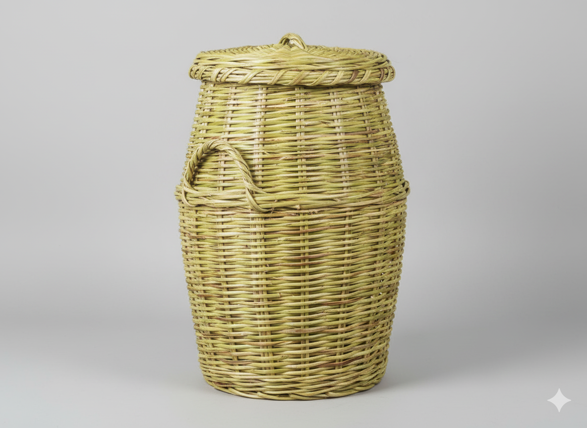 • Secure Lid: Includes a fitted, domed lid with a small top handle, perfect for keeping contents neatly concealed and dust-free.